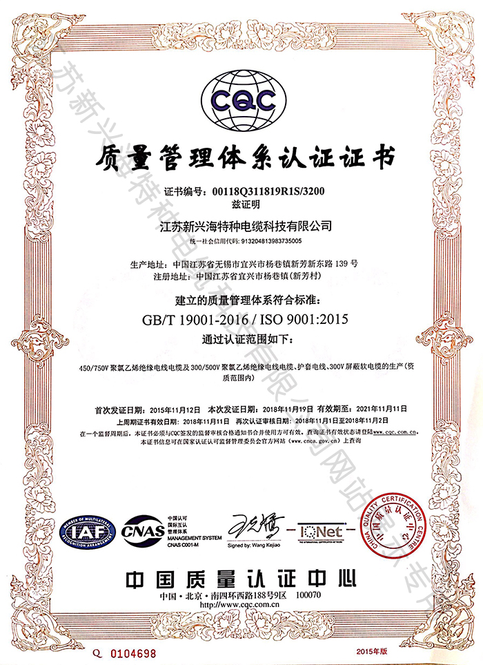 質(zhì)量體系管理證書(shū)-江蘇新興海